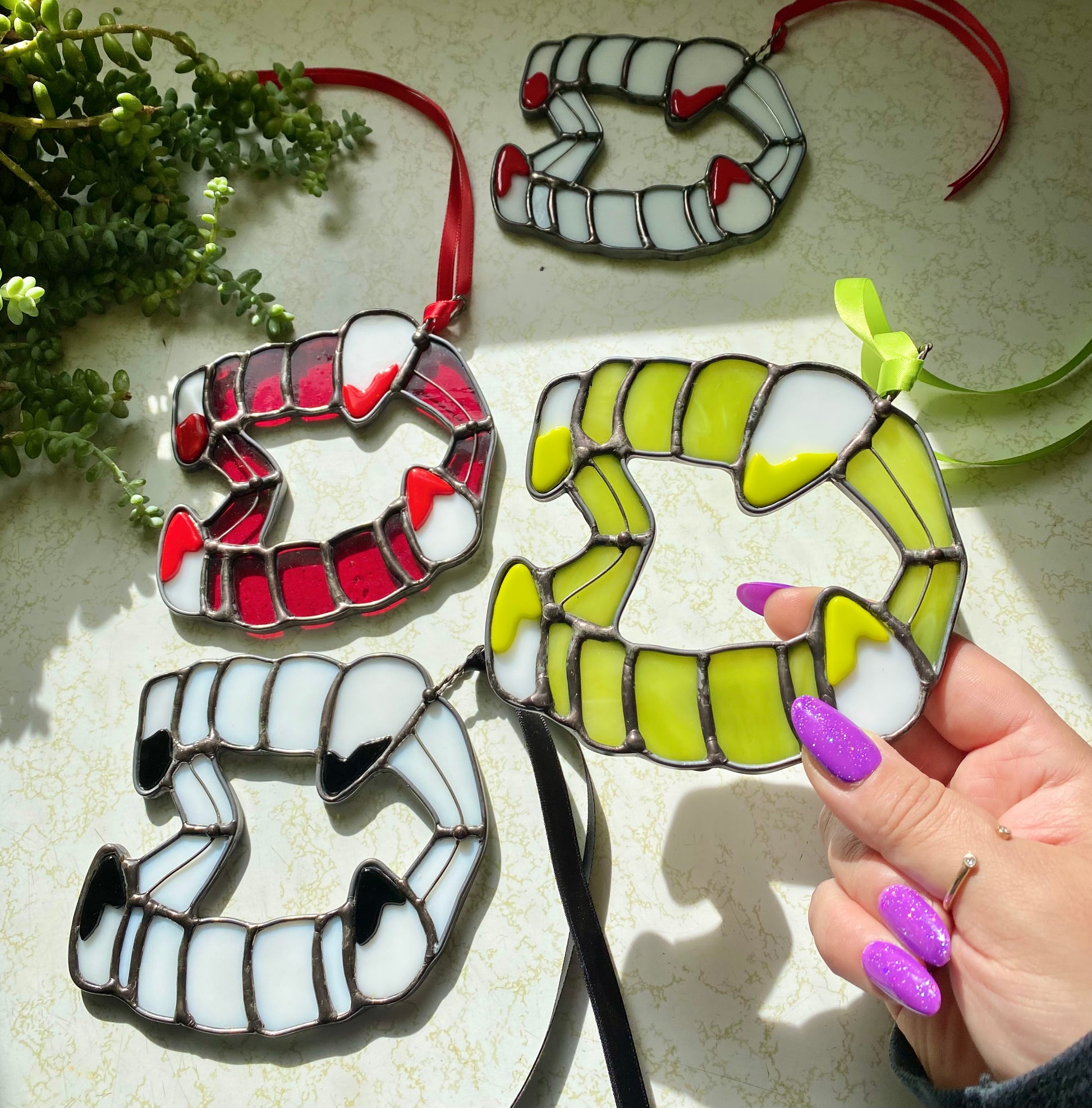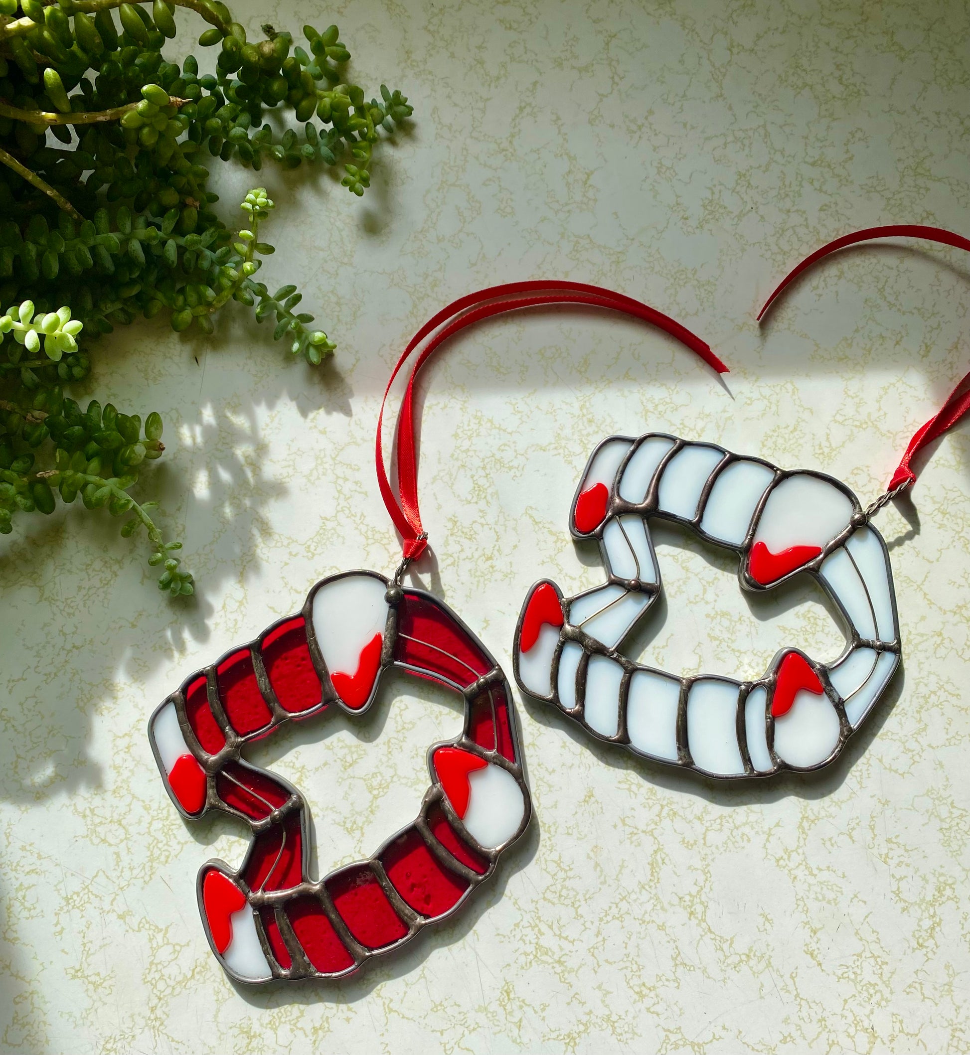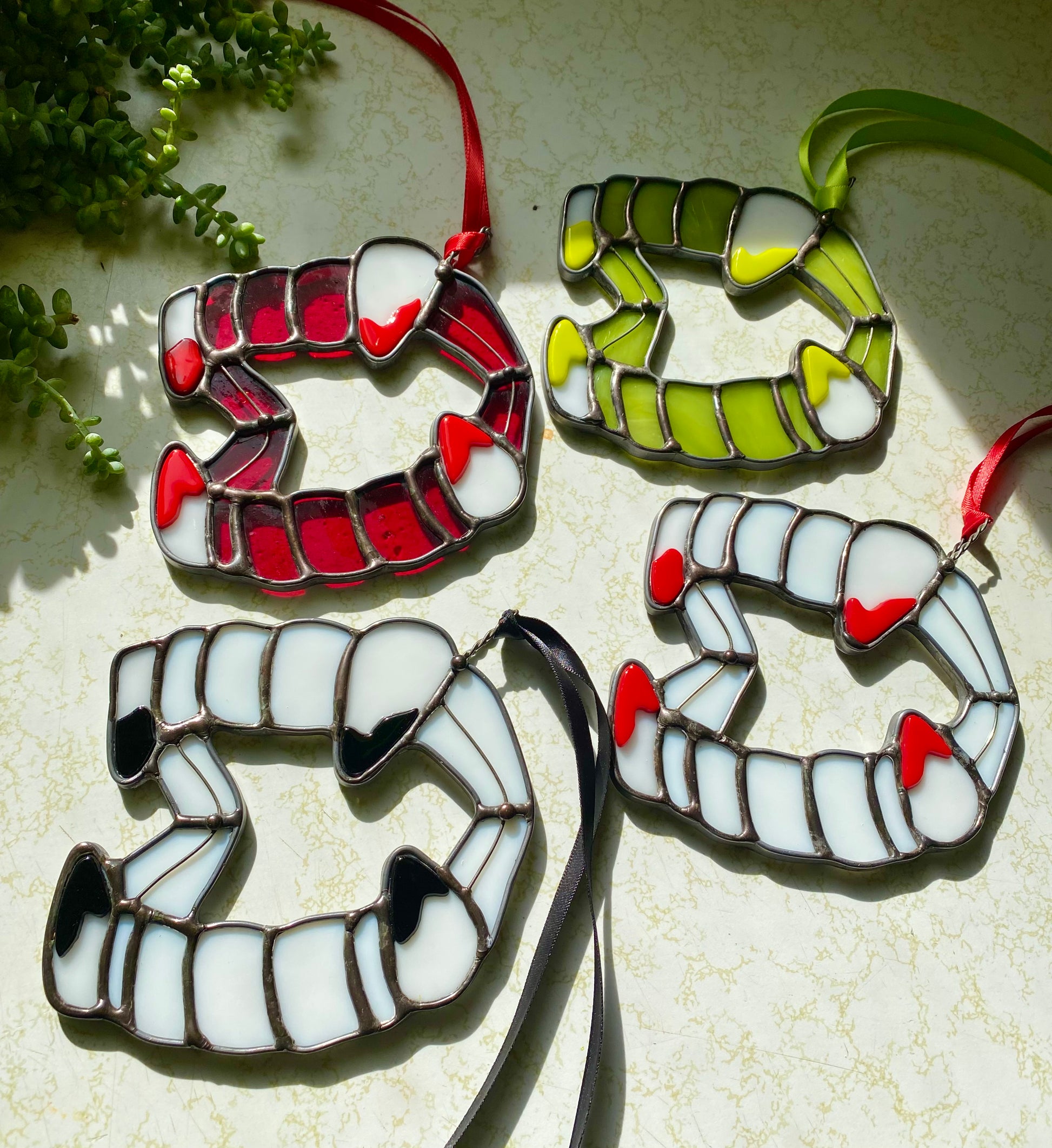 stained glass X fused glass fangs.
