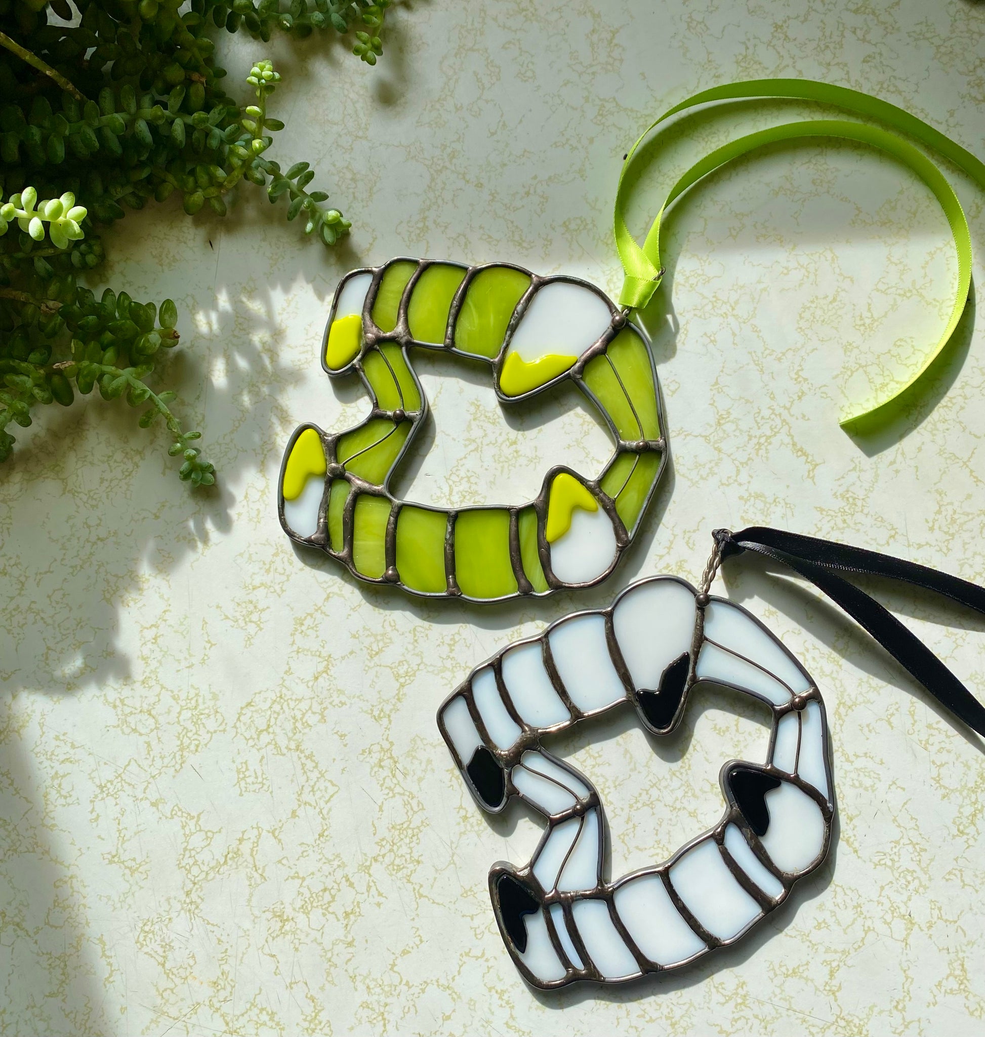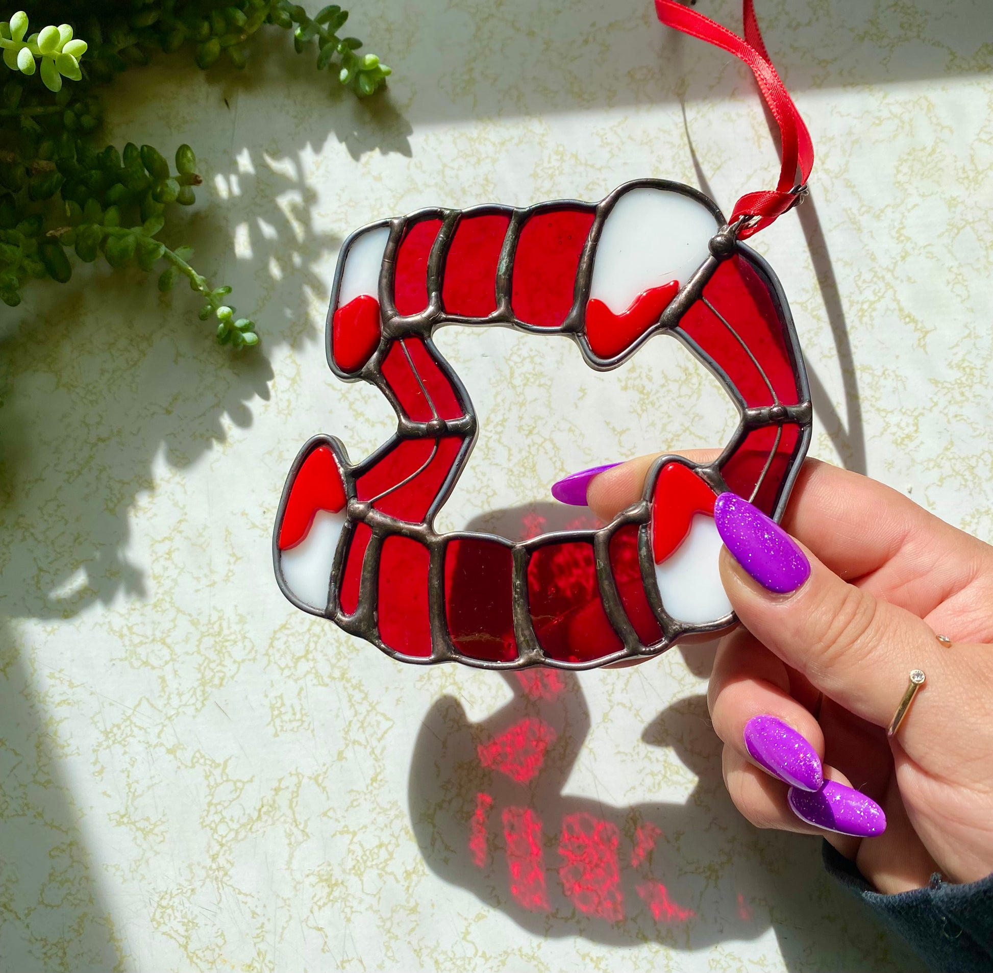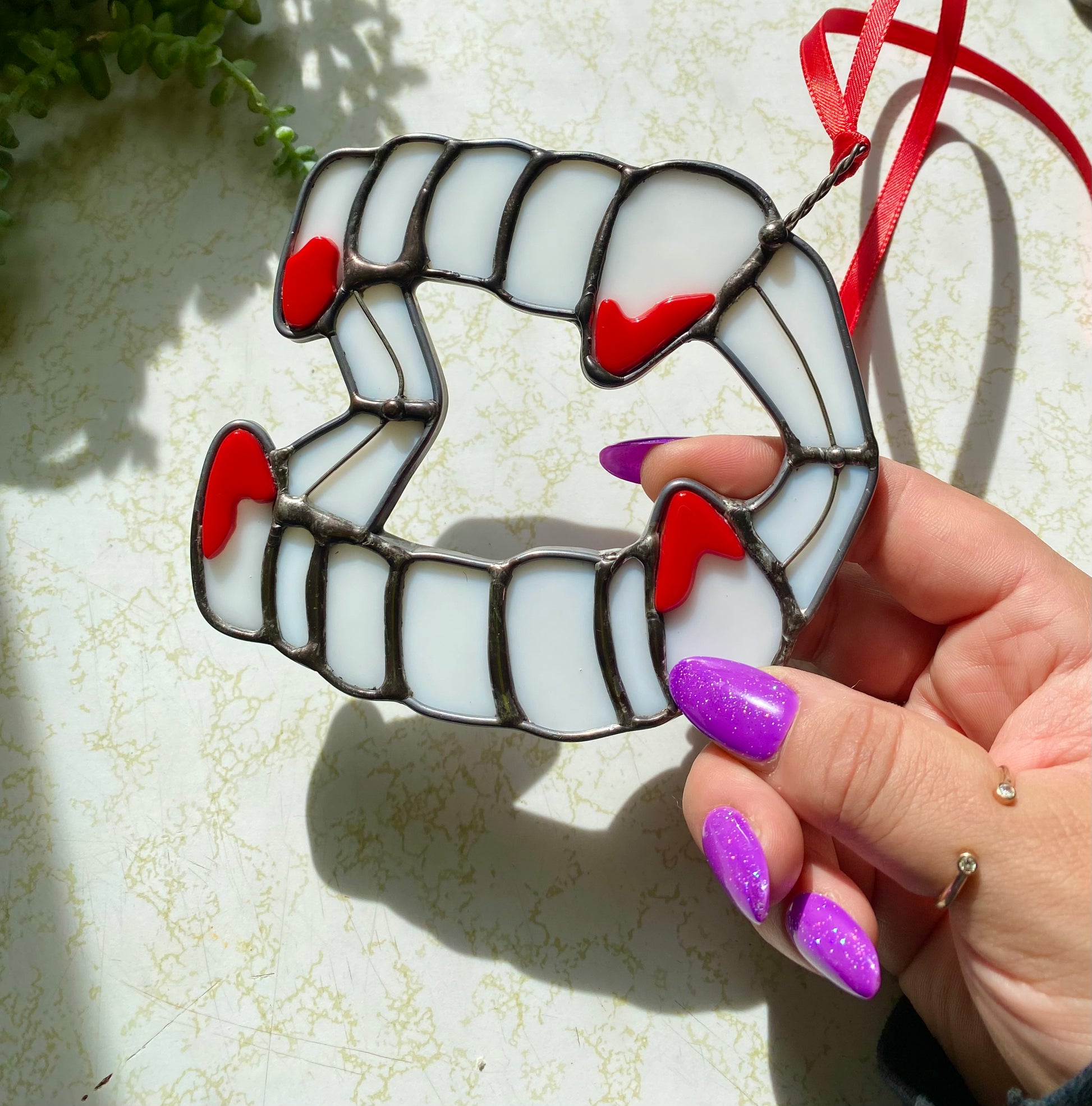 stained glass X fused glass fangs.